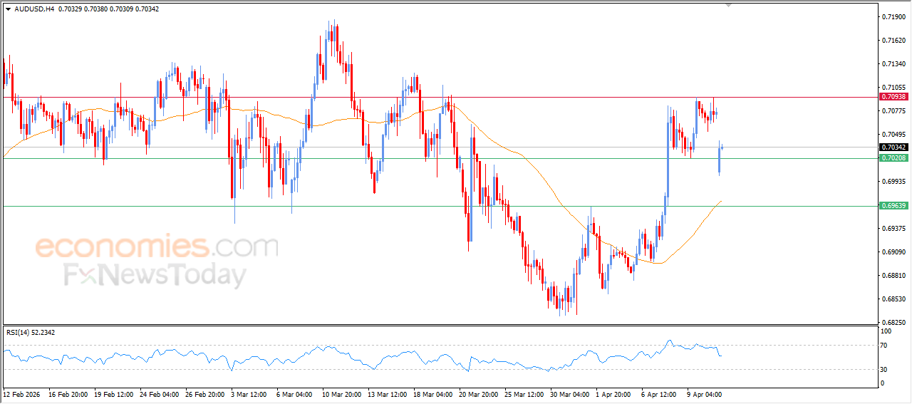 AUDUSD-paret stabiliseras efter de senaste intradagsförlusterna, efter att ha återhämtat sig från den viktigaste stödnivån på 0,7020. Detta stöd gav paret en viss positiv momentum, vilket hjälpte det att återhämta sig och återhämta en del av förlusterna som sågs i början av veckan.